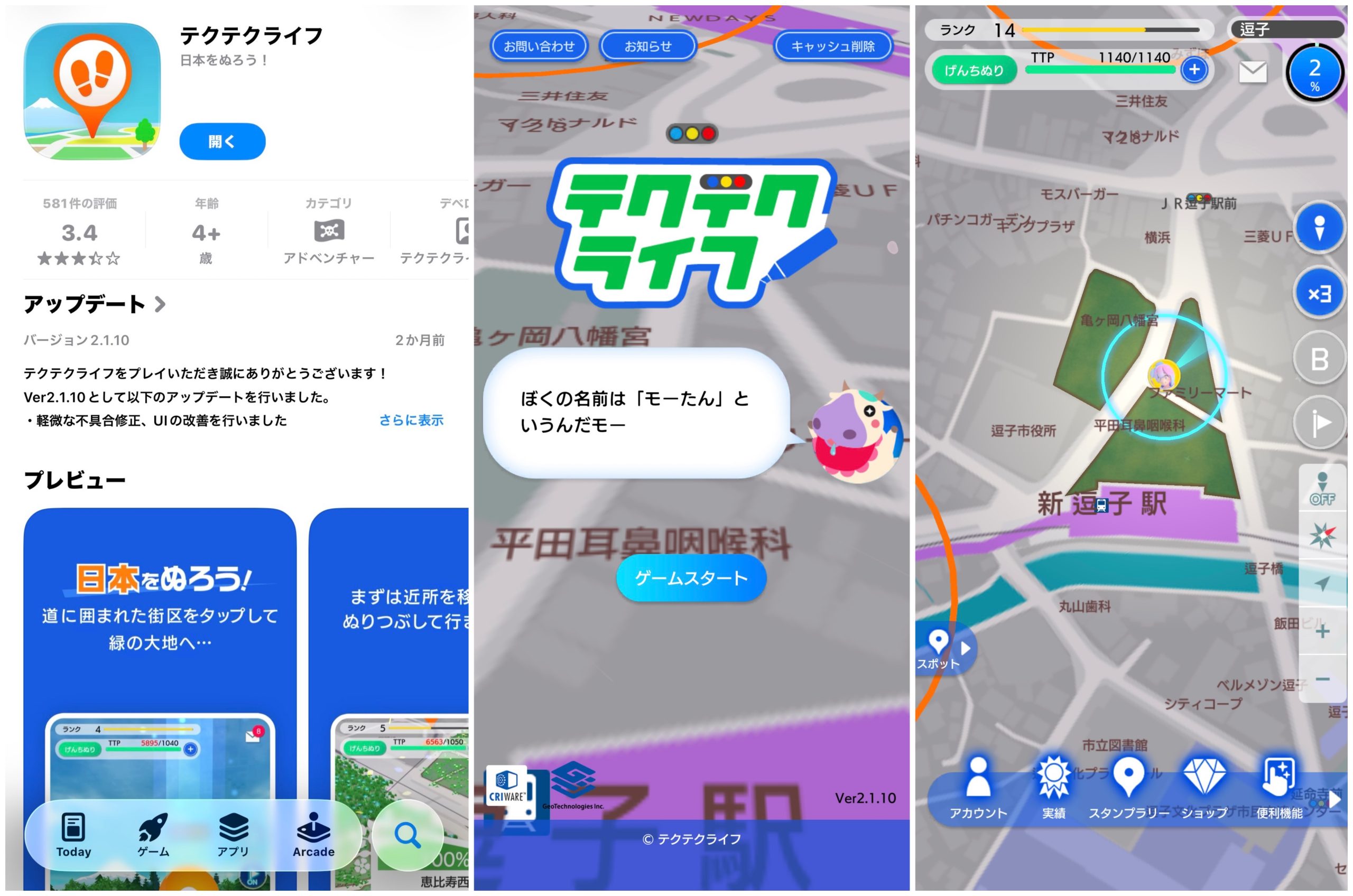 日本をぬろう!移動が楽しくなる地図塗りゲーム『テクテクライフ』