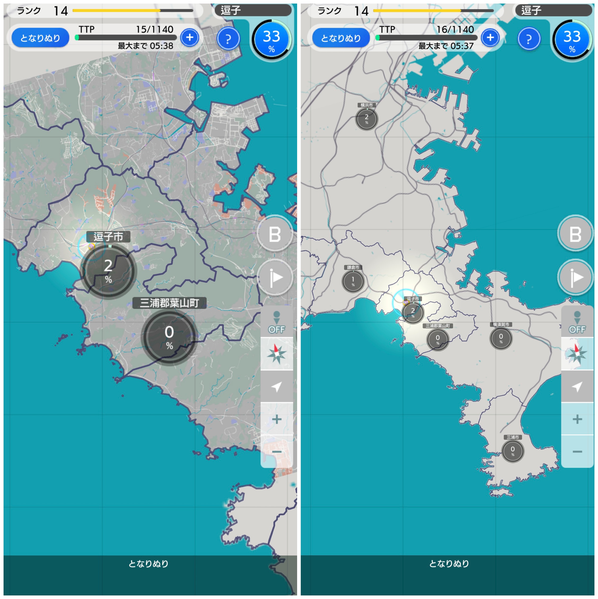 多くの位置情報ゲームではバトルや収集など複数の操作が必要ですが、『テクテクライフ』の主役はあくまで“塗ること”。街区ごとの100%表示で、日本全体を塗り進めるため1つの県を埋めるだけでもかなりの時間がかかります。