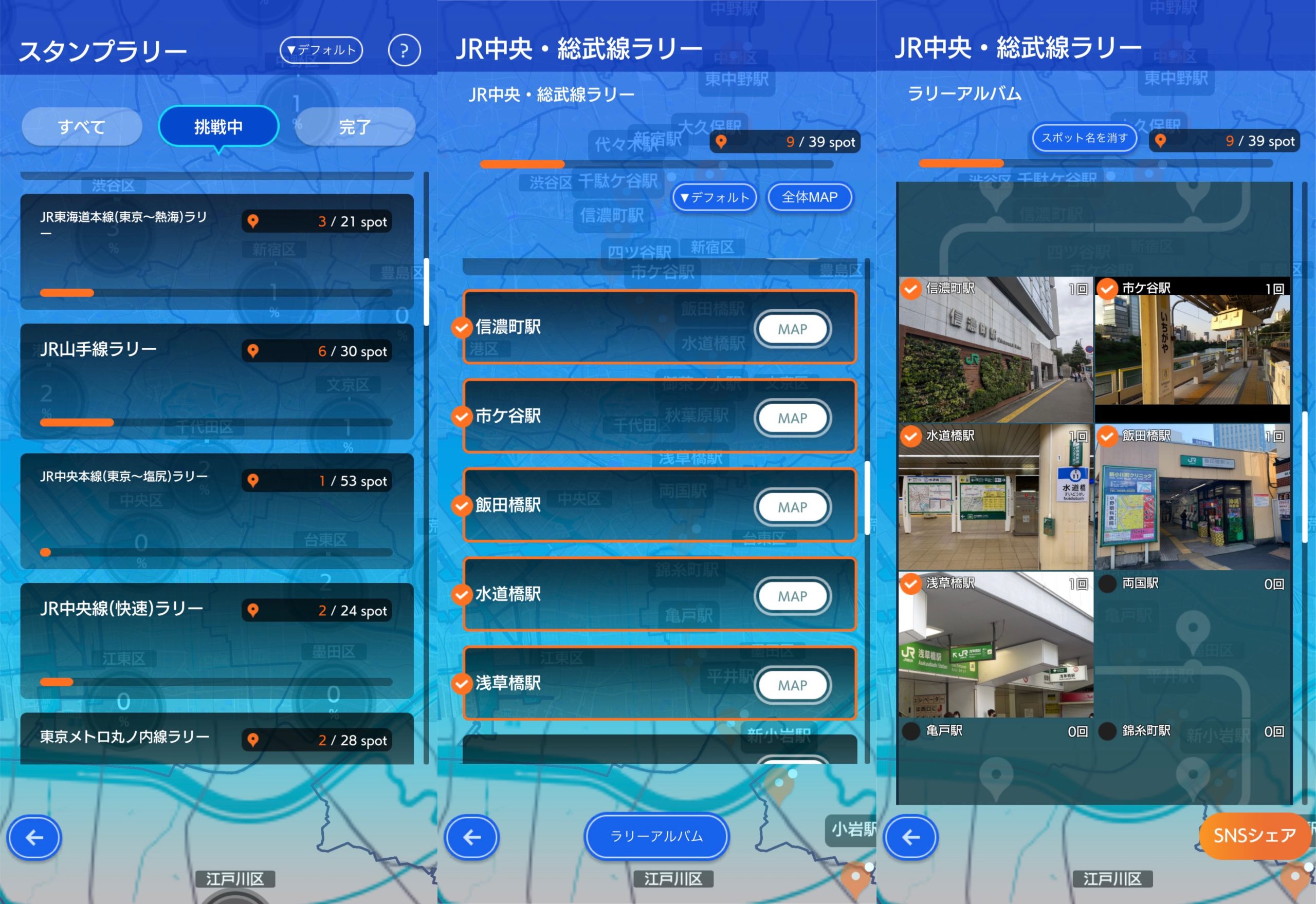 チャックインを集めるスタンプラリー機能もあるため、つい路線ごとにコンプリートしたくなります